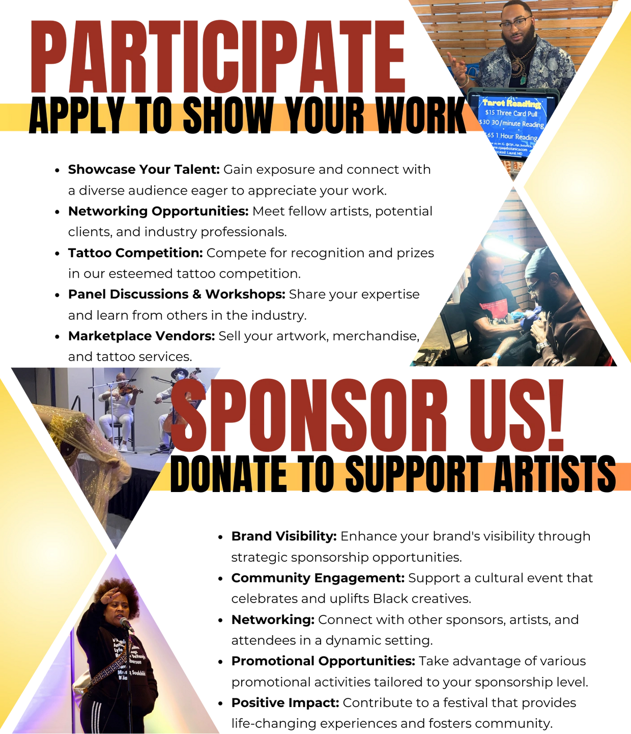 Whether you're an attendee, a participating artist, or a financial sponsor, the Black Tattoo Culture Con offers extraordinary opportunities for everyone.